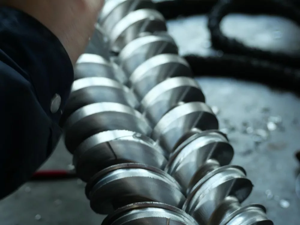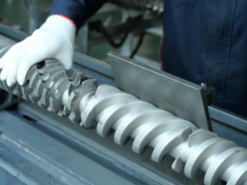 Malzeme seçimi de çok önemlidir. Vidalarımız yüksek kaliteli 38CrMoALA nitrürlenmiş alaşımlı çelikten yapılmıştır. Bu, yedi günlük bir söndürme ve nitrürleme işlemine tabi tutulur ve sonuçta 0,50-0,70 mm kalınlığında nitrürlenmiş katman ve HV950-1050 yüzey sertliği elde edilir. Bu malzeme özellikleri, 200°C civarındaki sıcaklıklarda bile mükemmel aşınma direnci sağlayarak vidanın hizmet ömrünü geleneksel ürünlere kıyasla en az beşte bir oranında uzatır. Bu, uzun süreli kullanım sonucunda yüzey aşınmasından dolayı ölü köşelerde malzeme birikmesini önler.